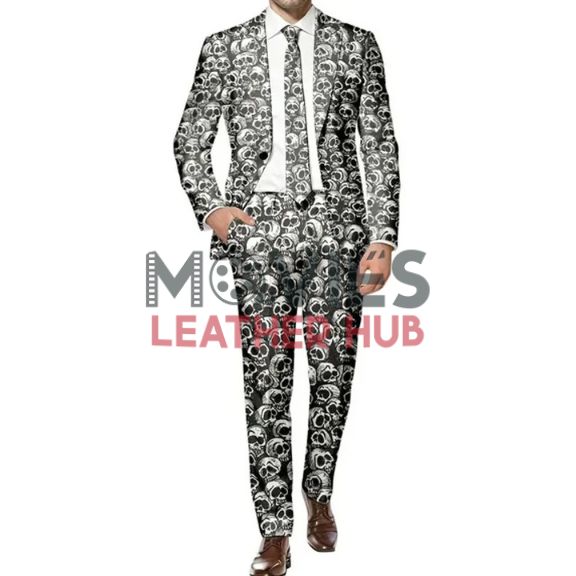 Step into the spooky season with this Halloween Skull Suit from Movies Leather Hub. It’s made to give you that bold Halloween look with its scary skull print and smooth fit. The fabric feels soft on the skin and keeps you comfy all night long. Perfect for parties, theme nights, or even just fun dress-up—this suit will surely grab attention wherever you go!